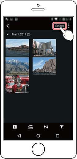 . The selected images will be saved to the smartphone. - To select all images at once, press the [