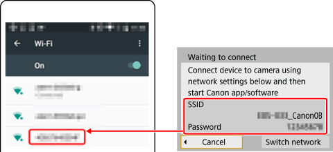 icon. - Please refer to the related information for details on the smartphones which can be connected with a camera wirelessly.