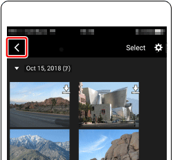 19. Use the smartphone to import images from the camera to the smartphone. - When the camera is connected to the smartphone, a list of the images on the camera will appear in Camera Connect. Tap [Select] appearing in the upper right of the screen.