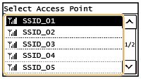 You can search the wireless routers (or access points) available for connection and select one from the display of the machine. For the network key, enter a WEP key or PSK. Before selecting a wireless router, check and write down the required setup information, including the SSID and network key. For details, see the "User's Guide" from the Canon website (canon.com/oip-manual).