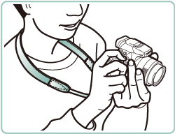 - When shooting, keep your arms close to your body and hold the camera securely to prevent it from moving.