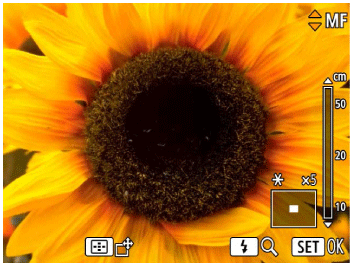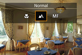 - The focus is now locked, and [MF] and the MF indicator are displayed.