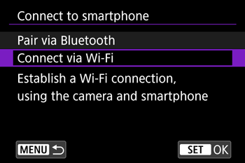 - Activate Bluetooth and Wi-Fi on the smartphone. Note that pairing with the camera is not possible from the smartphone’s Bluetooth settings screen.